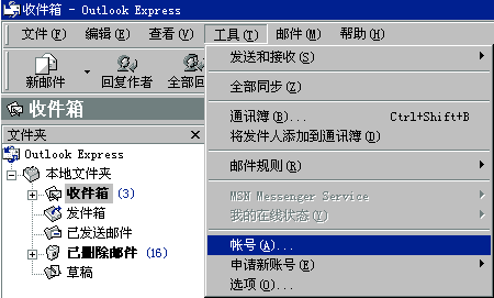 2.依次單擊"工具->帳號"菜單項,打開"Internet 帳號"窗口;