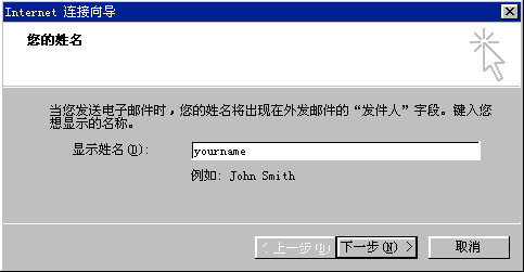 4.首先輸入您的"顯示姓名",此姓名將出現在您所發送郵件的"寄件人"一欄;
