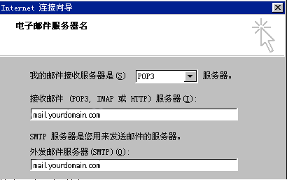 在"接收郵件(POP3,IMAP或HTTP)服務器(I)"中填寫您接收郵件的服務器地址,例如:mail.yourdomain.com;