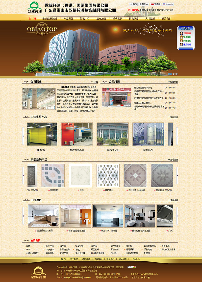 | 歐標(biāo)托浦(香港)國(guó)際集團(tuán)有限公司專(zhuān)注于建筑裝飾環(huán)保材料的設(shè)計(jì)、研發(fā)制造,主要擅長(zhǎng)的領(lǐng)域有鋁單板、氟碳鋁單板、鋁天花板、搪... |